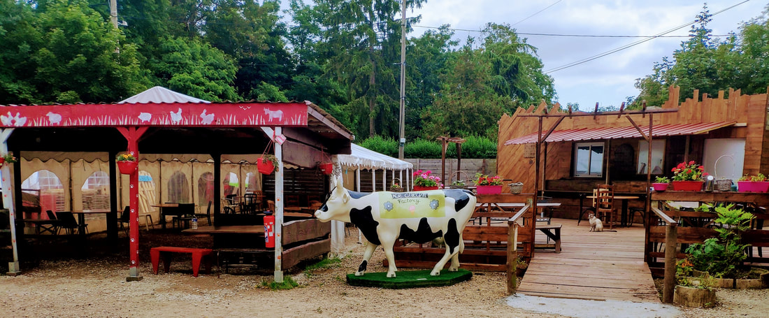 Il s’agit d’un endroit charmant ayant un passé de bal, aujourd’hui aménagé en ferme pédagogique en bistrot et lieu de bal en extérieur mais couvert (à gauche).