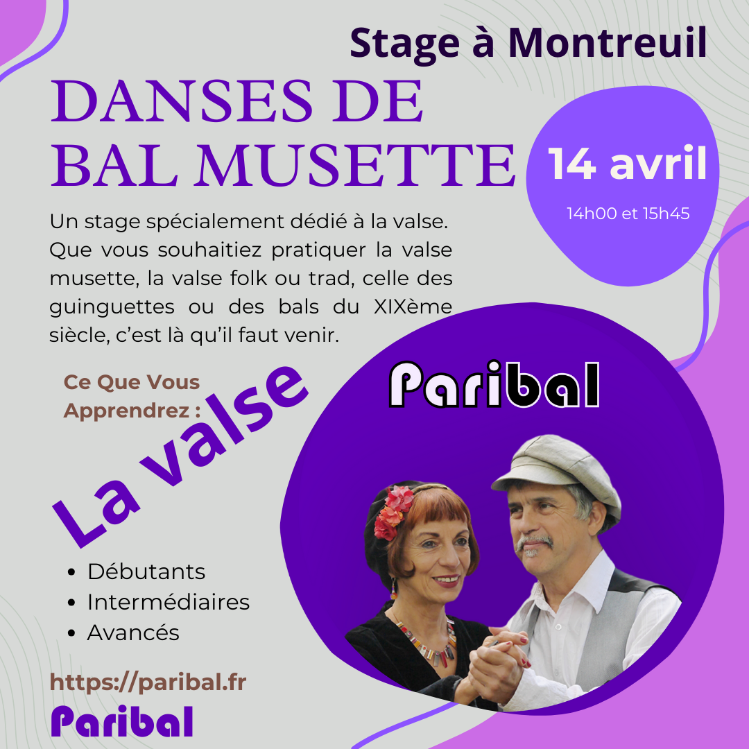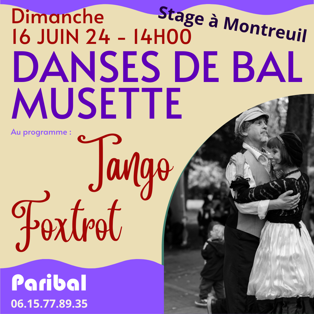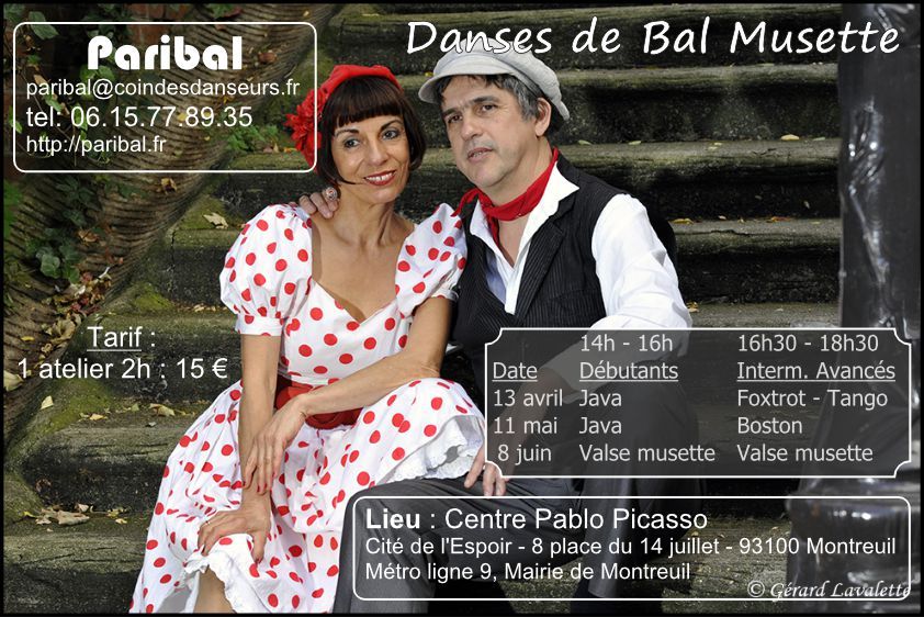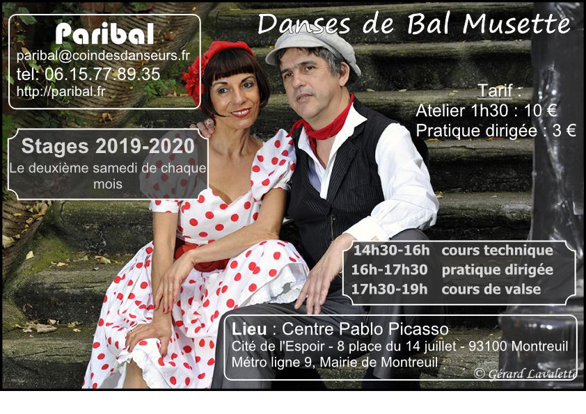 Tous les mois un stage le dimanche après midi de danses de bal musette et rétro. Ces stages auront lieu le deuxième dimanche de chaque mois.